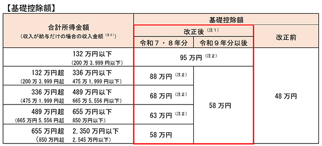 令和7年度税制改正による所得税の基礎控除の見直し等について(国税庁)