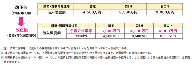 - 子育て世帯及び若者夫婦世帯: 借入限度額を上乗せ。